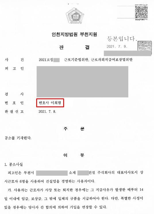 [ 형사 성공사례 ] 근로기준법 위반(공소기각 사례ㅖ
