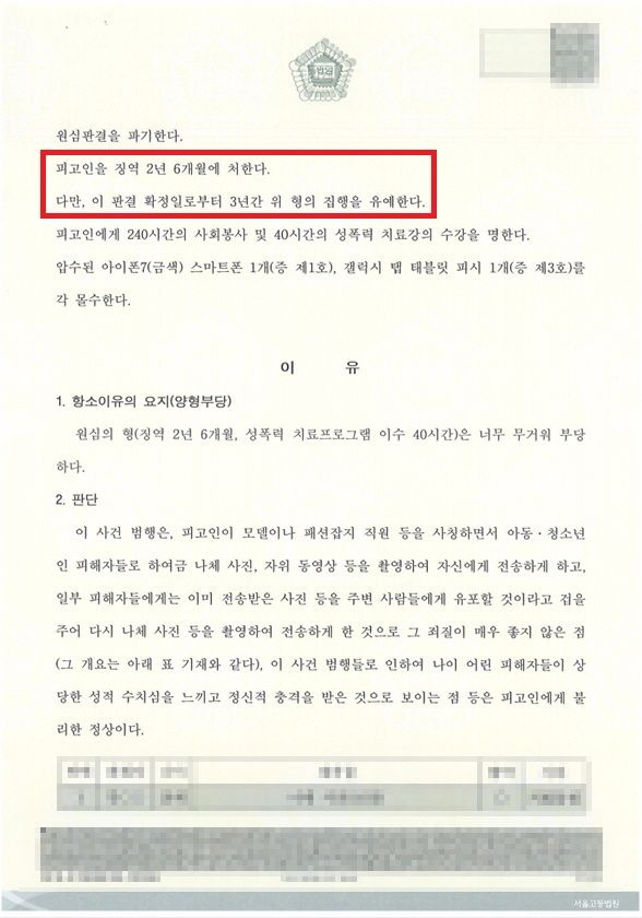 법원은 원심판결을 파기하고 집행유예의 선처를 내렸습니다.