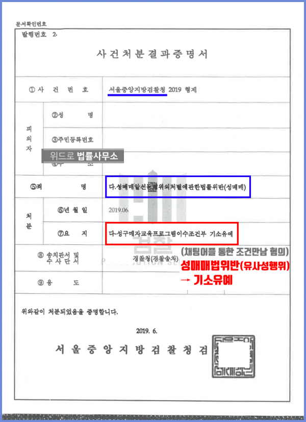 경찰조사를 무사히 마친 이후 사건은 서울중앙지방검찰청으로 송치되었고, 이때 김경환 대표변호사는 의뢰인 앙톡성매매혐의에 대한 억울한 부분을 이와 유사한 처분 사례를 근거로 선처가 가능한 사안임에 대해서 자세히 작성한 변호인의견서와 관련 증거자료, 참고자료들을 검찰에 제출하면서 조력을 아끼지 않았는데요.