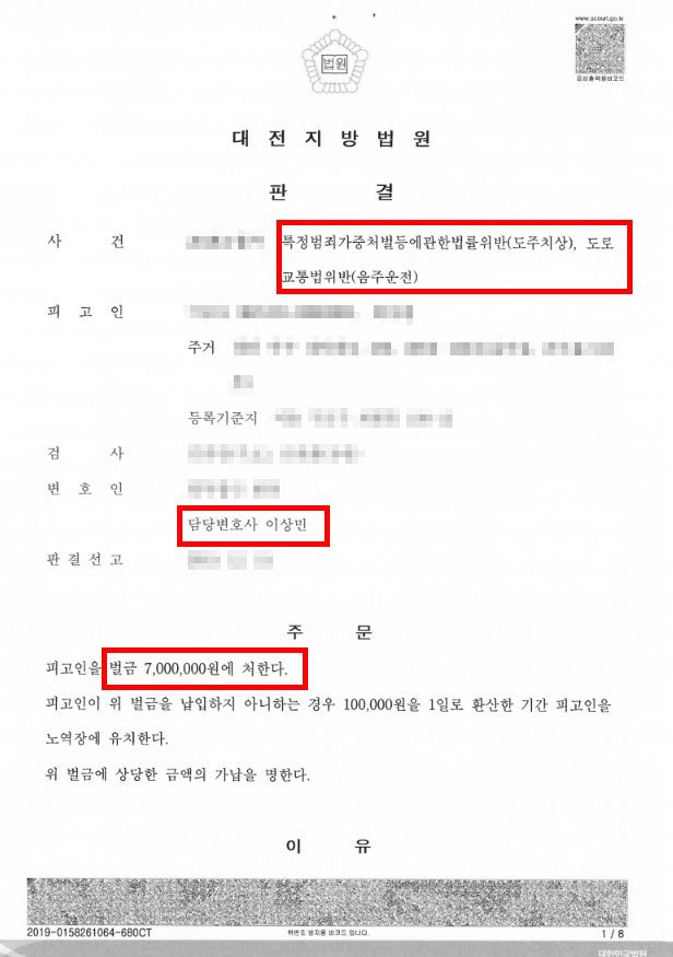 이러한 저희들의 조력의 결과, 법원에서도 사고 당시 상황과 의뢰인의 정상참작사유 등을 토대로 했을 때 참작사유가 있다고 판단하여 의뢰인에게 벌금700만원을 선고하였습니다.