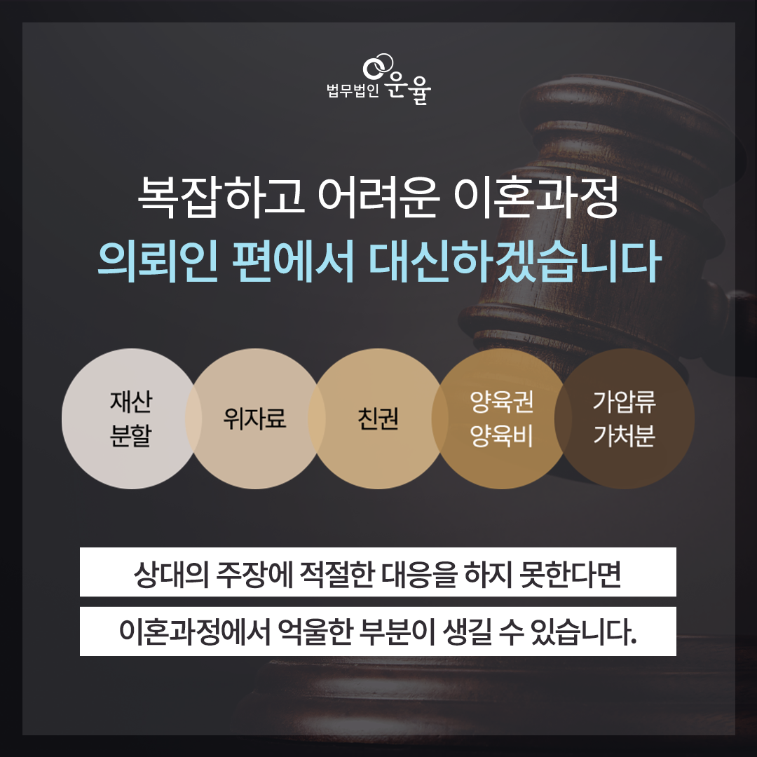 수많은 사례를 통해 높은 안목으로 유리한 길을 제시할 수 있는 전문가와 함께 한다면, 본격적인 이혼의 절차를 시작하기 전부터 이런 제도를 활용할 수 있다는 부분을 인지할 수 있을 것이고, 이런 부분을 미리 신청하는 등, 승소에 유리한 지원을 받을 수 있을 것입니다.
