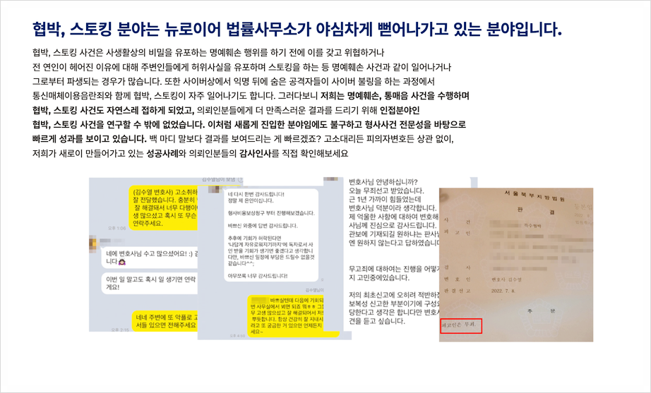 이런 분들을 위해 전화협박보다 더욱 까다로운 '특수협박' 사건에서 무죄를 이끈 로펌으로서,