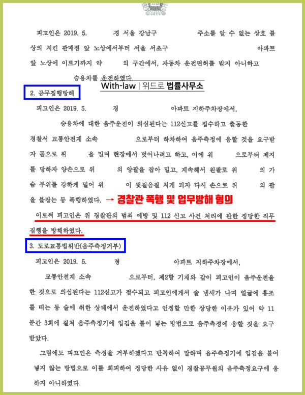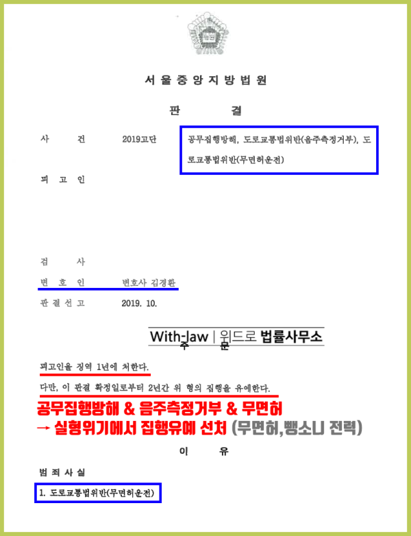 죄명 : 공무집행방해, 도로교통법위반(음주측정거부, 무면허운전)