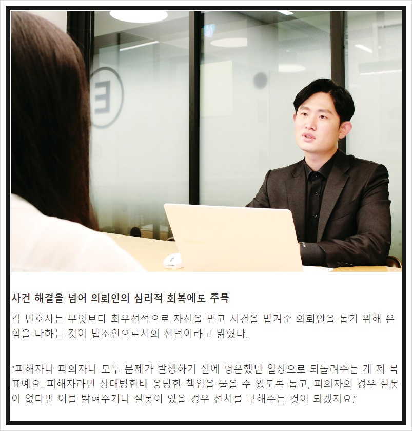 실력 있는 조력자와 제대로 된 상담 1번만 받아봐도 '어떻게 고소를 해야 하는지', '어떻게 해야 내 피해를 최소화할 수 있는지' 그 모든 방법을 얻으실 수 있기에 권유 드린 것입니다.