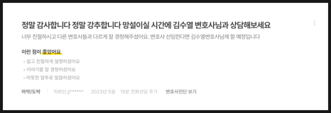 저희 믿고 연락을 주시는 만큼, 그에 부끄럽지 않도록 올바른 해결책을 제시해 드리도록 하겠습니다.