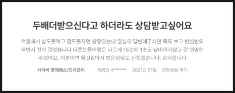 현재 저희는 하루 상담 건수를 제한해야 할 만큼, 바쁜 나날을 보내고 있습니다.