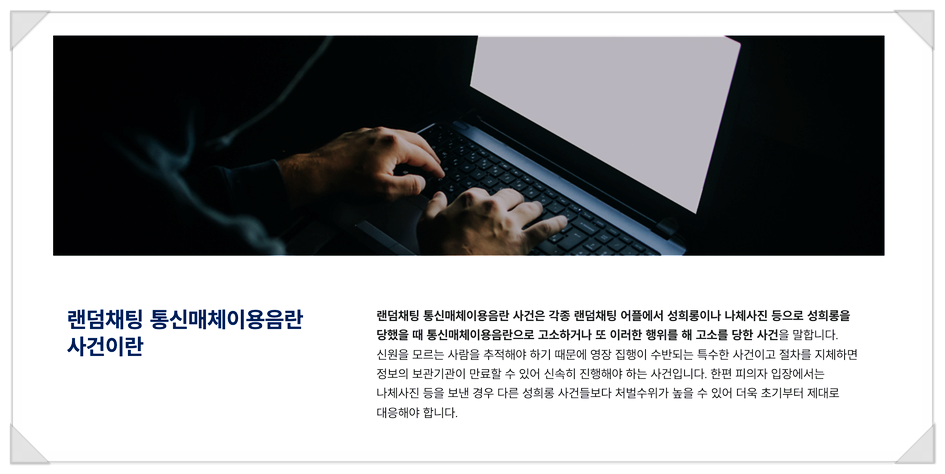 오늘 이렇게 저희가 준비한 랜덤채팅 고소 무혐의 전략에 대한 내용이 마무리가 되었습니다.