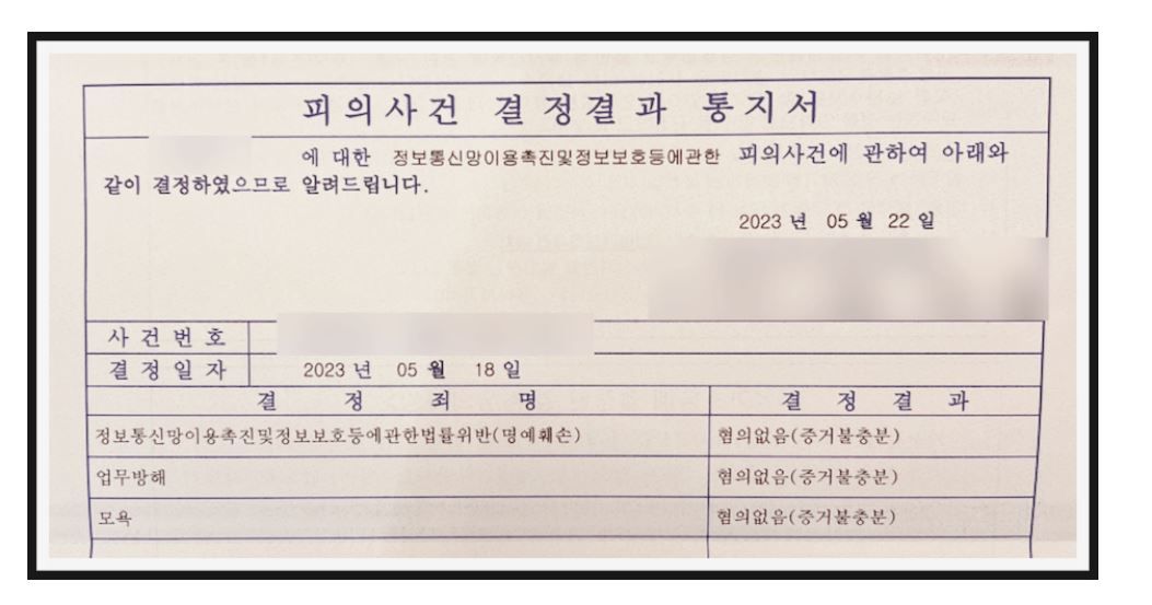 최근 계속해서 사건이 발생하는 리뷰에서 무혐의라는 결과를 이끌 수 있었다고 생각하는데요.