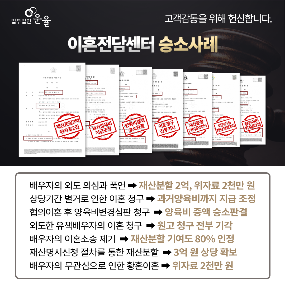 보통은 조정이혼 절차에서 서로 합의가 잘 될 경우 절차에서 이혼이 되지만, 상대와 부딫히게 될 여러 문제로부터 미리 대책을 세우는 것이 현명합니다. 경험과 노하우가 풍부한 이혼상담변호사와 미리 준비하신다면 추후 발생할 변수에 대해서도 안전하고 확실하게 대응 방안을 마련하실 수 있습니다.