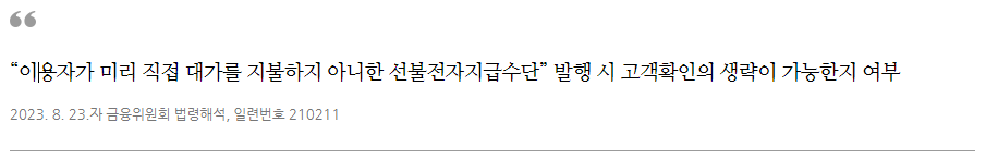 오늘은 금융위원회의 최신 법령해석 중 전자금융업자의 선불전자지급수단 발행 관련 KYC 생략이 가능한지 여부에 대해 살펴보도록 하겠습니다.