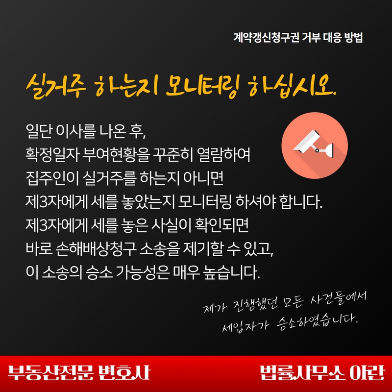1. 세입자는 일단 이사를 나온 후, 집주인이 제3자에게 세를 놓는지 여부를 꾸준히 모니터링하여야 합니다.