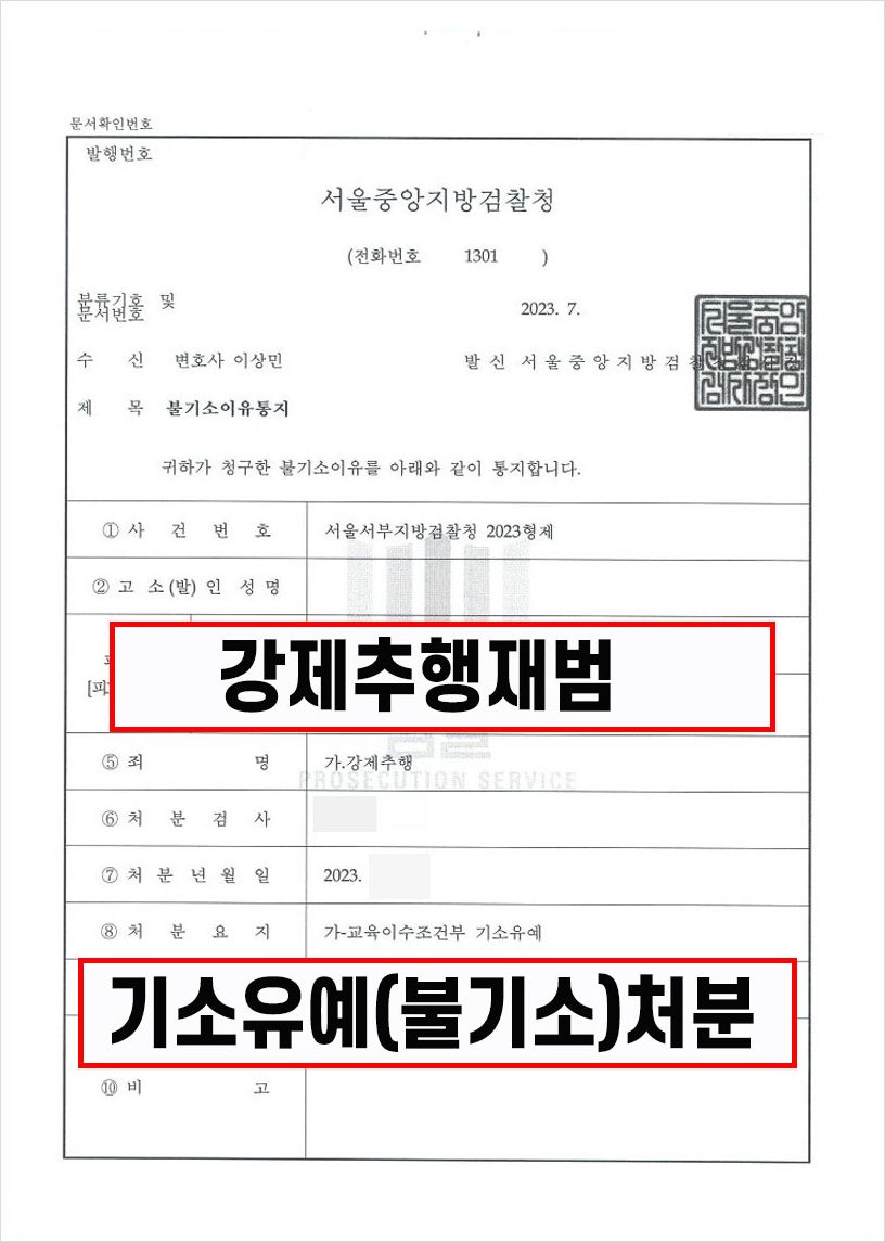 물론 처음 강제추행으로 혐의를 받을 때 저희 로펌의 조력을 받아 다행히 기소유예로 선처를 받아내기는 했습니다.