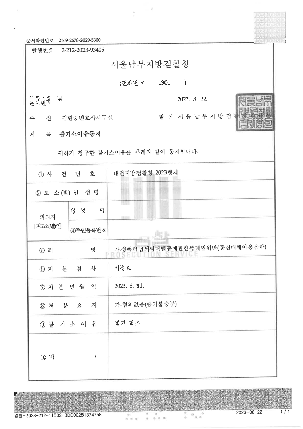 이 사건 피의자는 혼자 준비하여 경찰조사까지 혼자 받았으나, 경찰은 혐의가 있다고 보아 피의자에 대해 송치처분을 하였습니다.