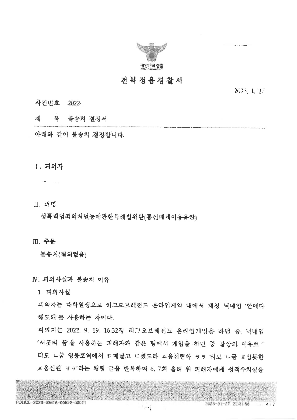 결론적으로 게임 통매음은 위 두가지 유형 모두 무혐의주장이 가능 합니다. 특히나 첫번째 성적 패드립 유형이 무혐의처분을 받기에 더욱 쉽고, 두번째 유형조차도 무혐의처분을 받는 것이 그리 어렵지 않습니다.