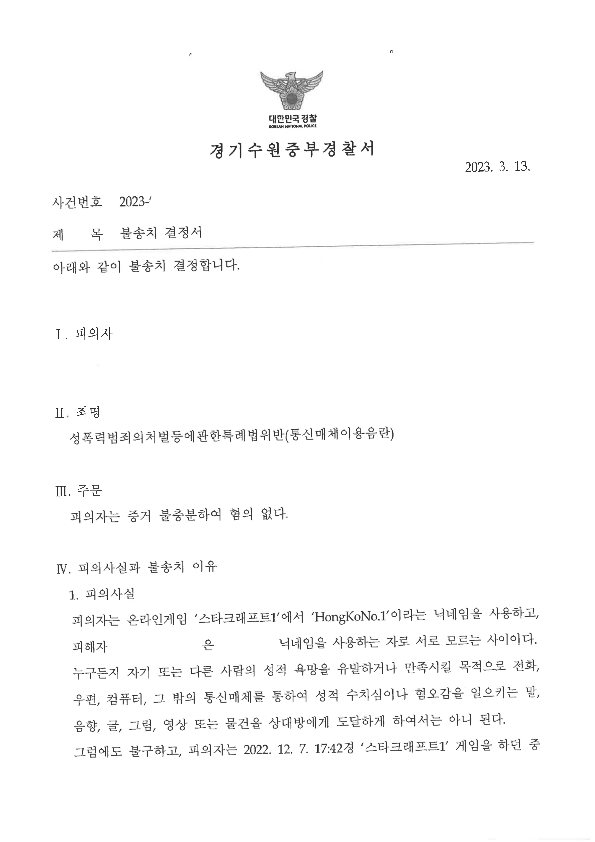 결론적으로 게임 통매음은 위 두가지 유형 모두 무혐의주장이 가능 합니다. 특히나 첫번째 성적 패드립 유형이 무혐의처분을 받기에 더욱 쉽고, 두번째 유형조차도 무혐의처분을 받는 것이 그리 어렵지 않습니다.