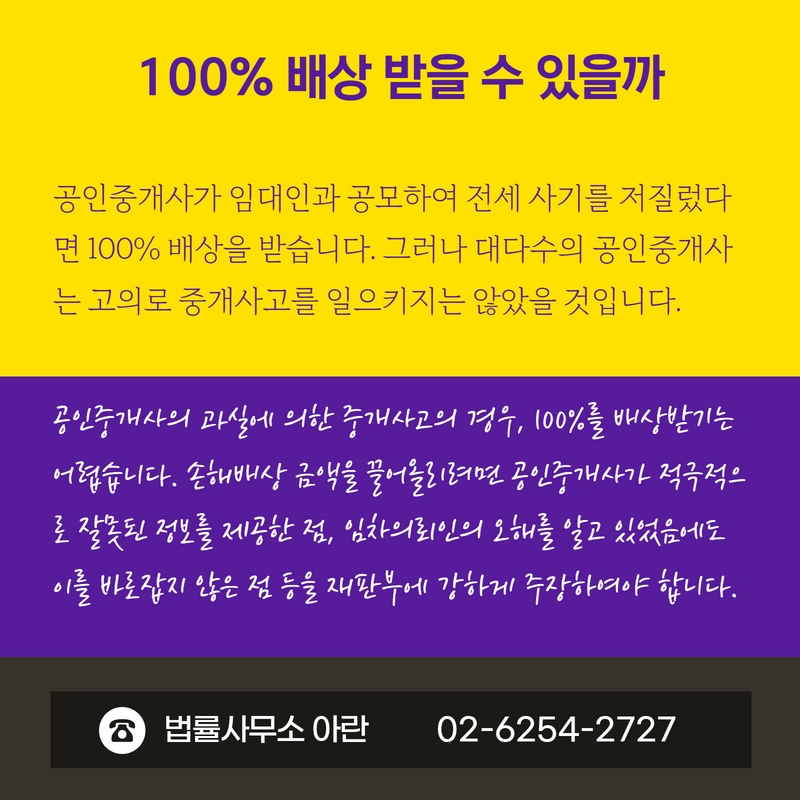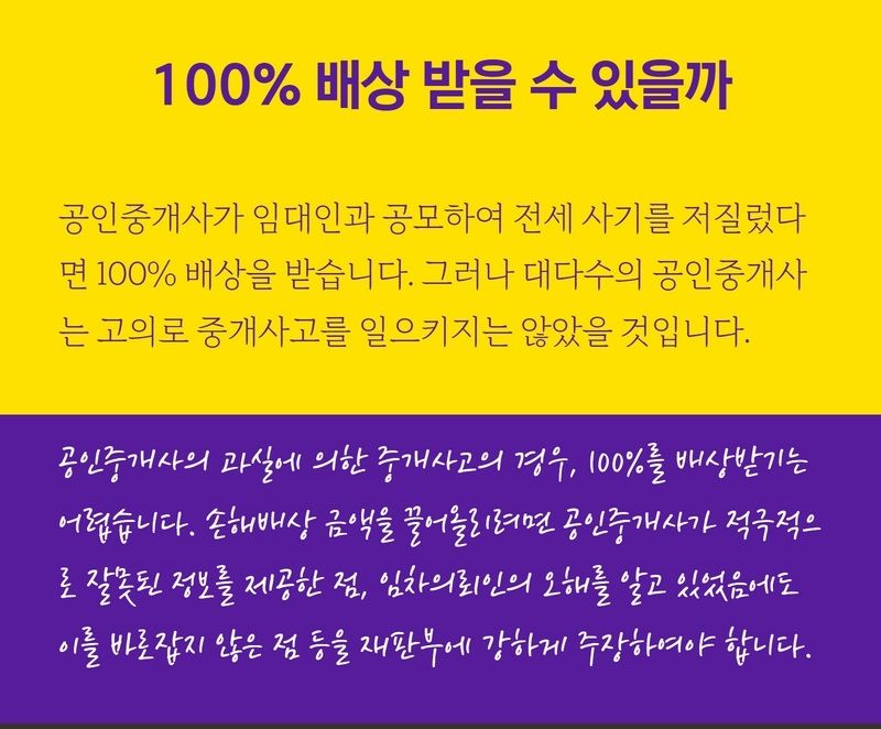 다만 공인중개사에게 손해를 100% 배상받기는 쉽지 않습니다.