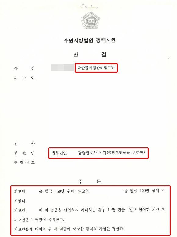 축산물위생관리법 위반 혐의를 벌금형으로 방어한 성공사례입니다.