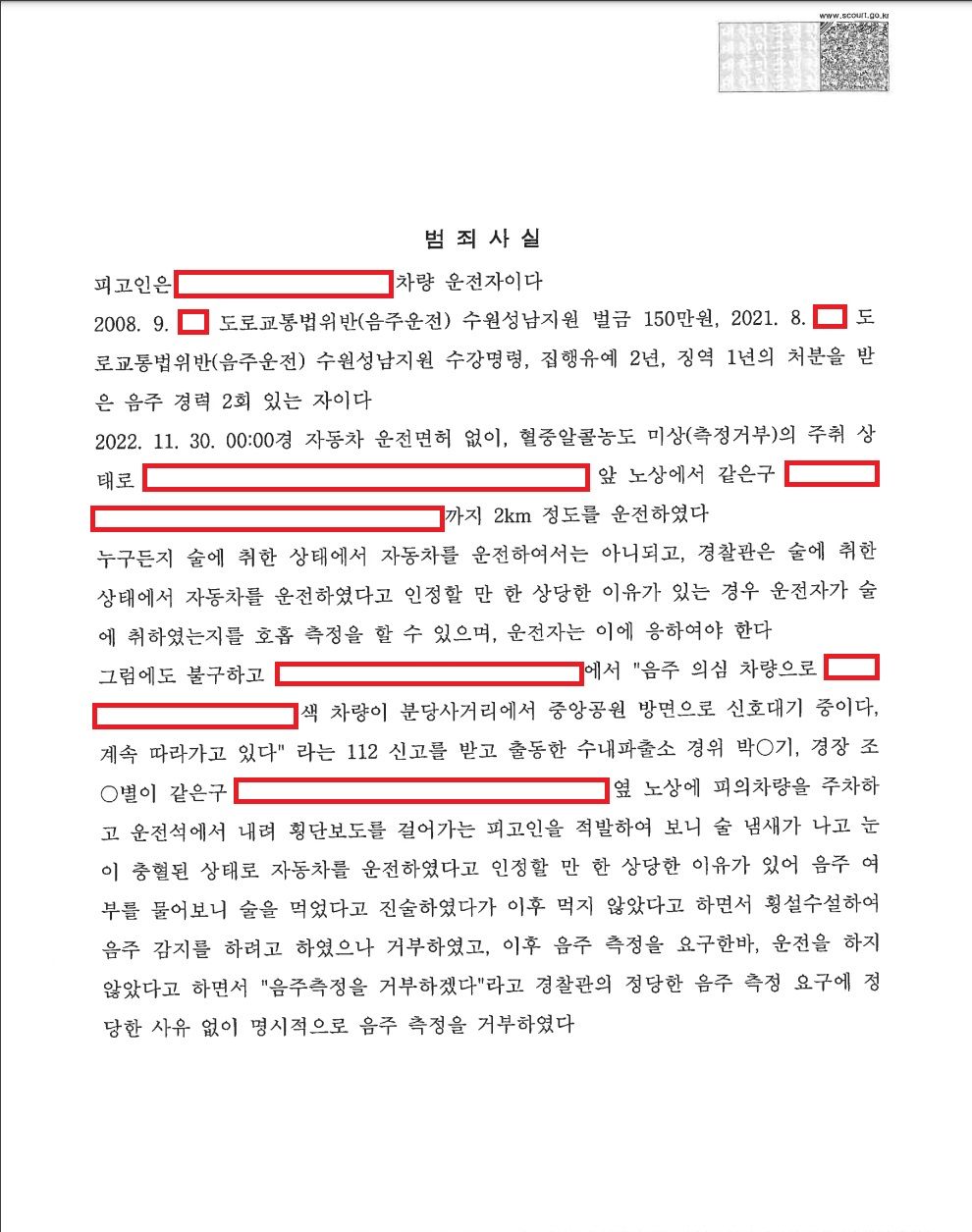 게다가 2021년에 발생한 음주운전으로는 이미 징역 1년에 집행유예 2년을 선고받아 집행유예 기간이 끝난 지 3개월도 되지 않은 상태였습니다.