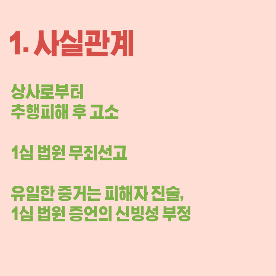 의뢰인은 직장 상사로부터 추행을 당한 뒤 고소하였으나, 1심에서 무죄가 선고되어 억울함을 호소하셨습니다.
