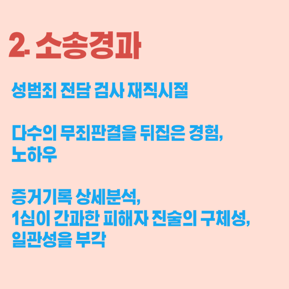 검사시절 다수 성범죄 무죄 판결들을 항소하여 뒤집었던 경험과 자료들을 토대로 판결을 분석하였고 유죄가 선고되어야 하는 논리를 구성하였습니다.
