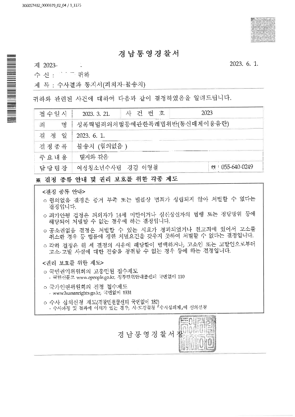 이 사건의 경우 경찰단계부터 선임하시어 적극 무혐의주장하여 훨씬 편하게 불송치처분을 받을 수 있었습니다.