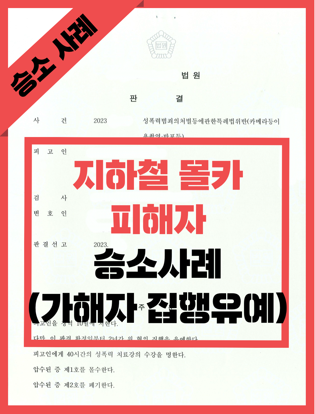 저희 사건 또한, 대중교통에서 일어난 범죄이며 피해자가 다수인 사건이었고 피해자가 직접 촬영된 영상물은 이미 삭제됐기에 합의 과정이 녹록치 않았습니다.