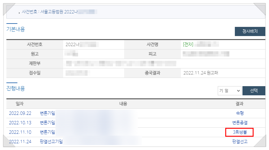 이렇듯 쌍불로 인하여 항소가 취하되면 1심 판결이 그대로 확정됩니다. 만약 원고가 1심에서 패소한 상태였음에도 불구하고 항소심에서 쌍불(쌍방불출석) 취하가 되었다면 원고는 더 이상 다투어볼 기회가 없어지는 것입니다.