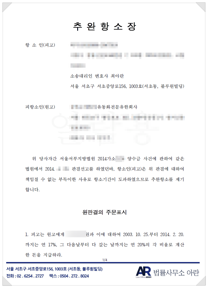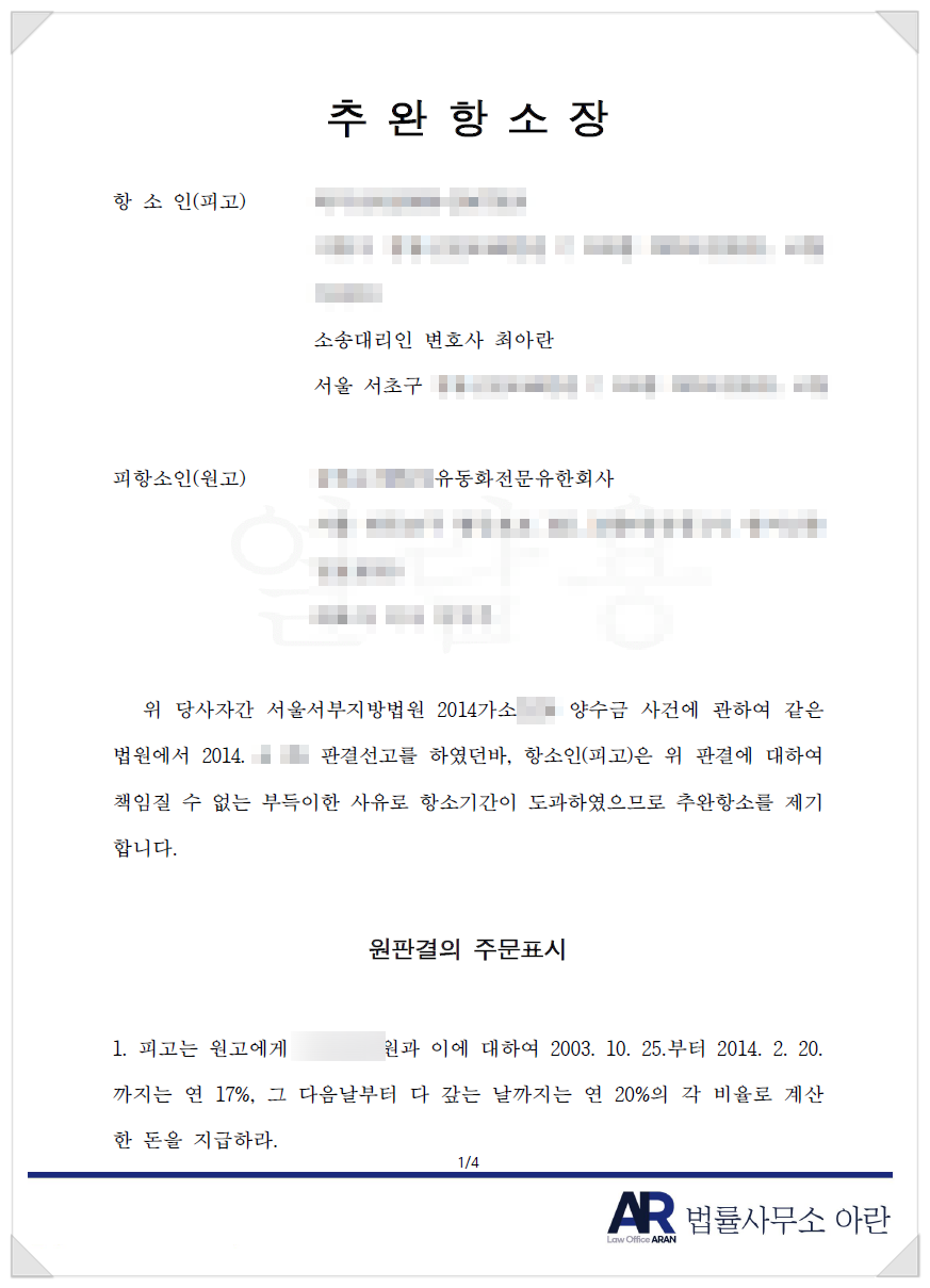 이에 저는 2014년도 사건의 판결문을 발급받고, 그로부터 2주 이내에 추완항소를 제기하였습니다.
