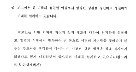 아울러 부유는 의뢰인이 가족과의 유대가 매우 깊은 사실을 언급하면서, 가족들과 지인들이 적극적으로 의뢰인의 재범 방지를 위해 노력하겠다는 약속을 부각하고, 의뢰인이 지금까지의 방탕한 생활을 모두 청산하고 앞으로의 구체적인 인생목표를 설정하여 실천하겠다는 마음을 담은 인생계획서를 제출하여 의뢰인의 선처를 구하였습니다.