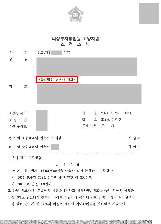 [ 민사 성공사례 ] 임금 및 약정금 청구 성공사례