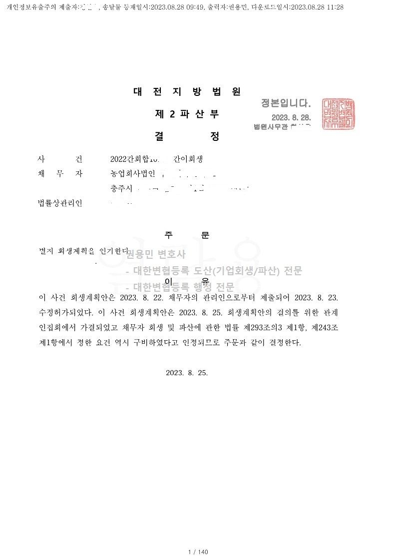 법인회생인가결정