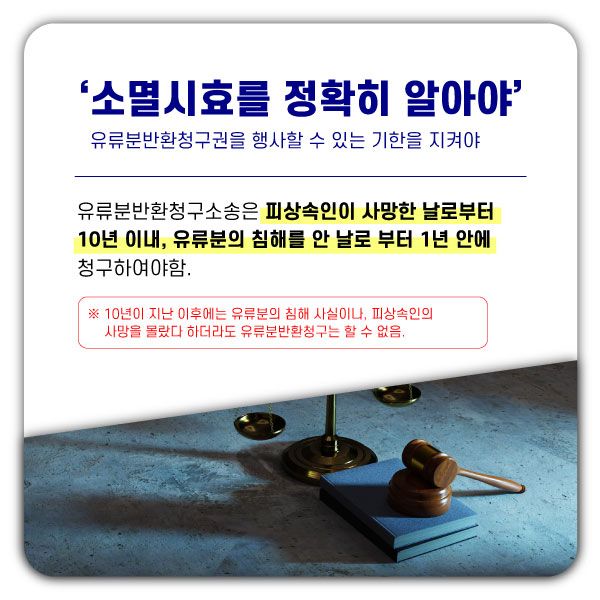 이러한 소멸시효 문제는 유류분 소송의 처음 단계에서 원고와 피고 간에 서로 공방이 있게 되는 하나의 쟁점이므로 서로 잘 살펴야 할 부분입니다.