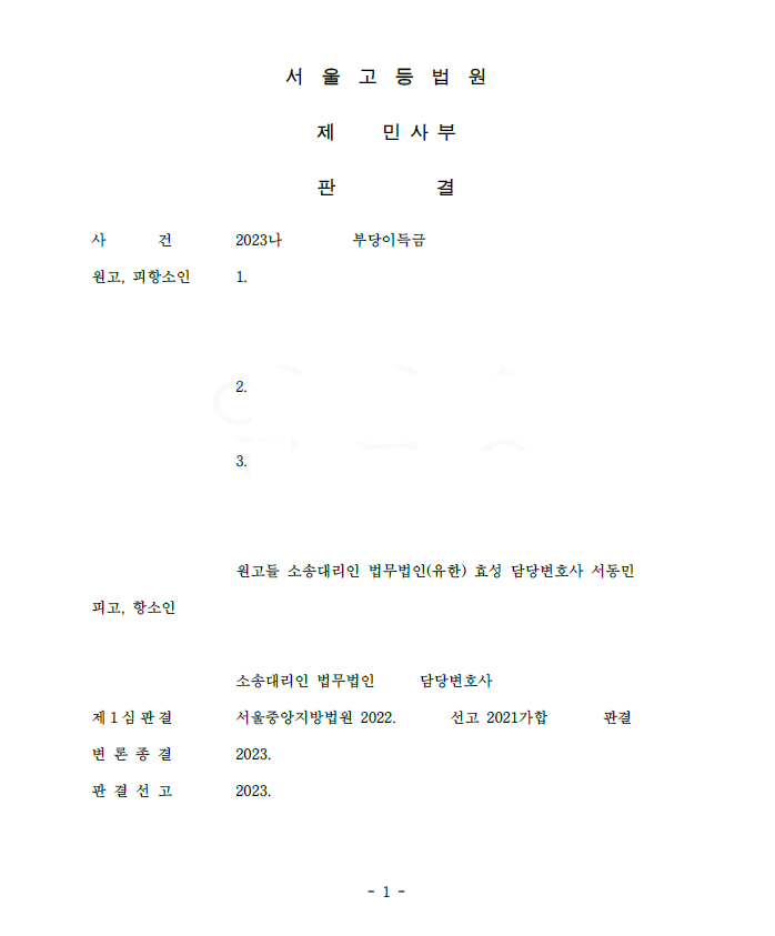 투자 사기, 인스타부업사기, 로맨스스캠 사기, 출장마사지 사기, 엘뱅크 사기 등을 당한 경우 입금 받은 자를 상대로 민사소송 부당이득반환청구를 하여 피해액을 받아낸 사건은 이미 여러 차례 포스팅한 바 있습니다.
