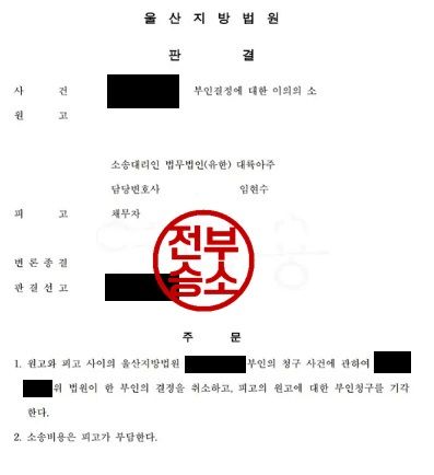 재판부는 본 변호사의 의견을 수용하여, 법원의 부인 결정을 취소하고 피고의 원고에 대한 부인청구를 기각하는 결정을 하였습니다.