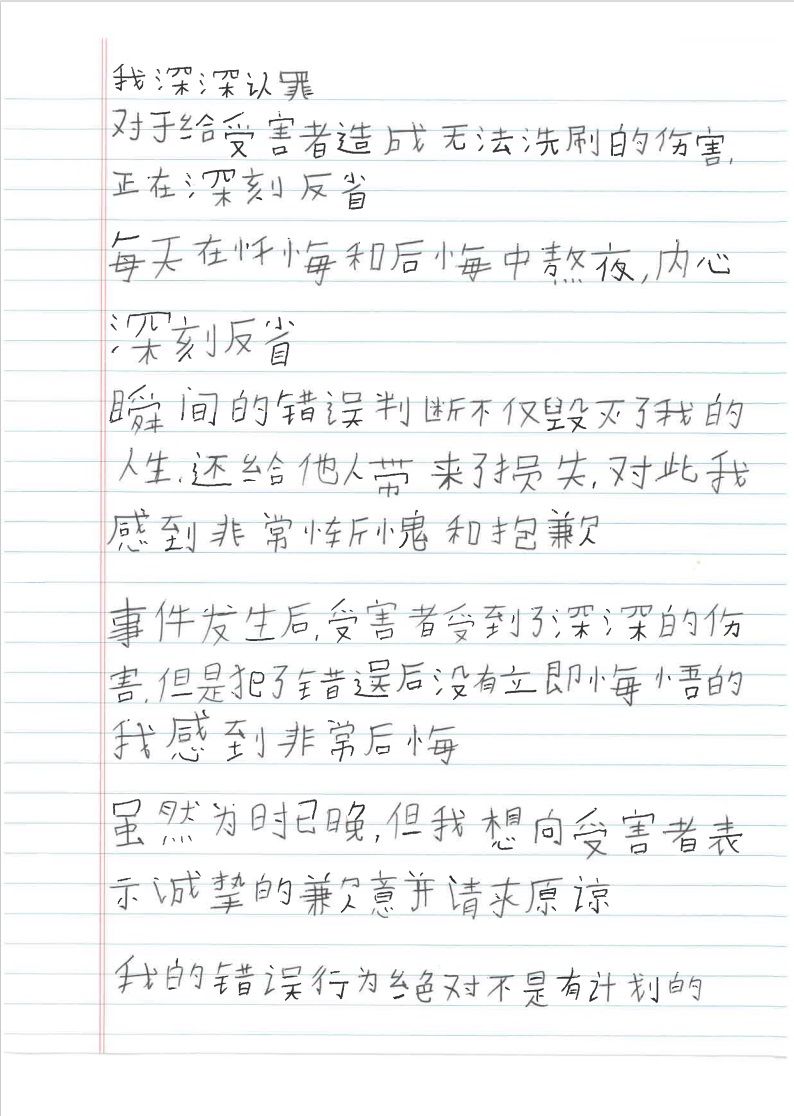 본인이 처벌받지 않아야 하는 이유, 얼마나 죄송하고 사과드리고 싶은지에 대하여 중국어로 된 반성문을 써야 한다.