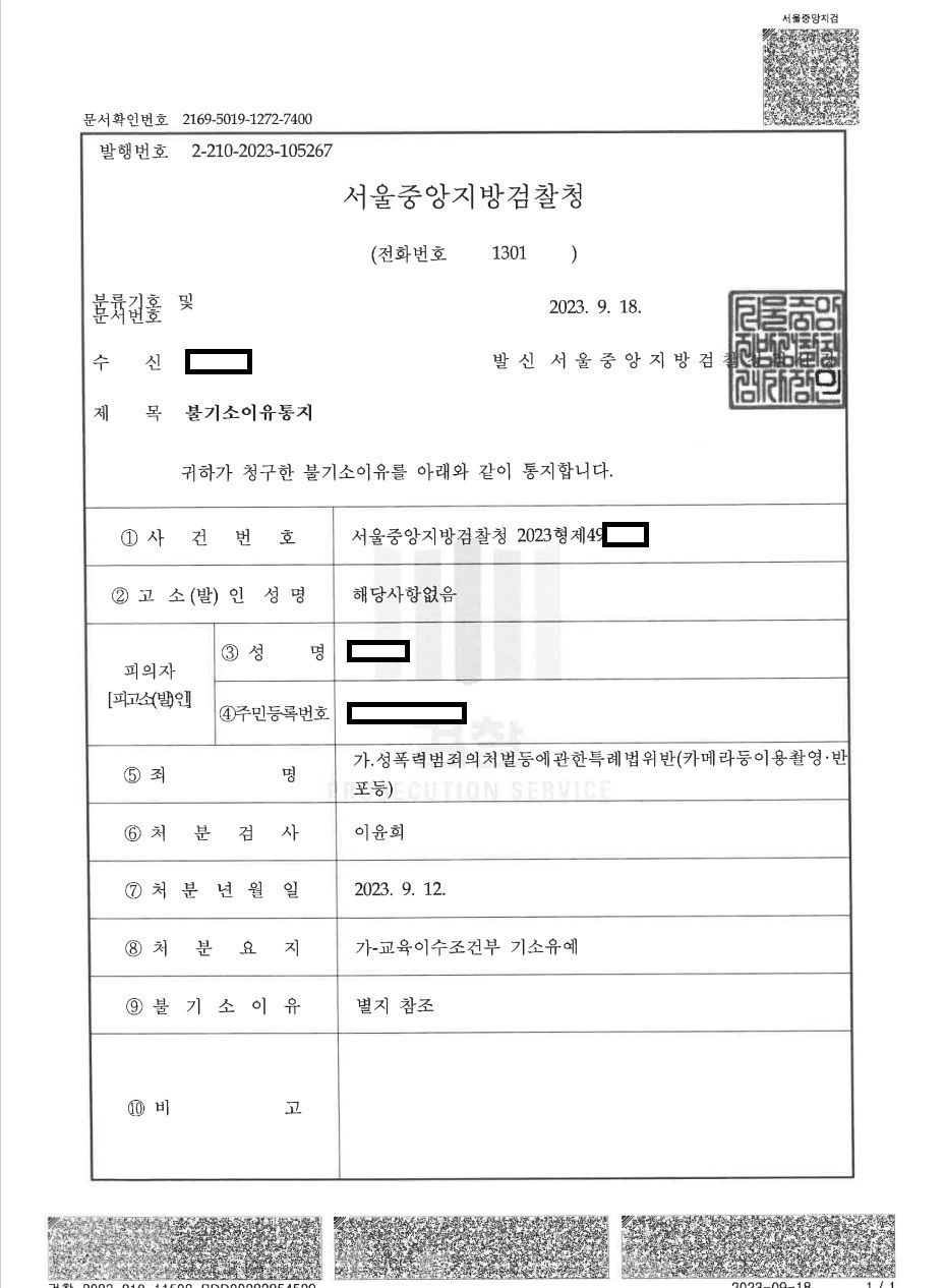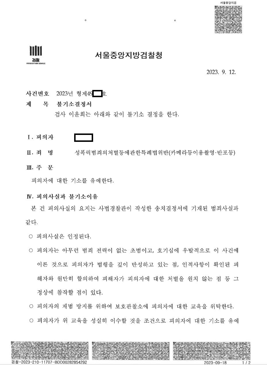 카메라등이용촬영 2죄가 구공판되지 않고 '교육조건부'로 '기소유예' 된 성공사례는 매우 드뭅니다.