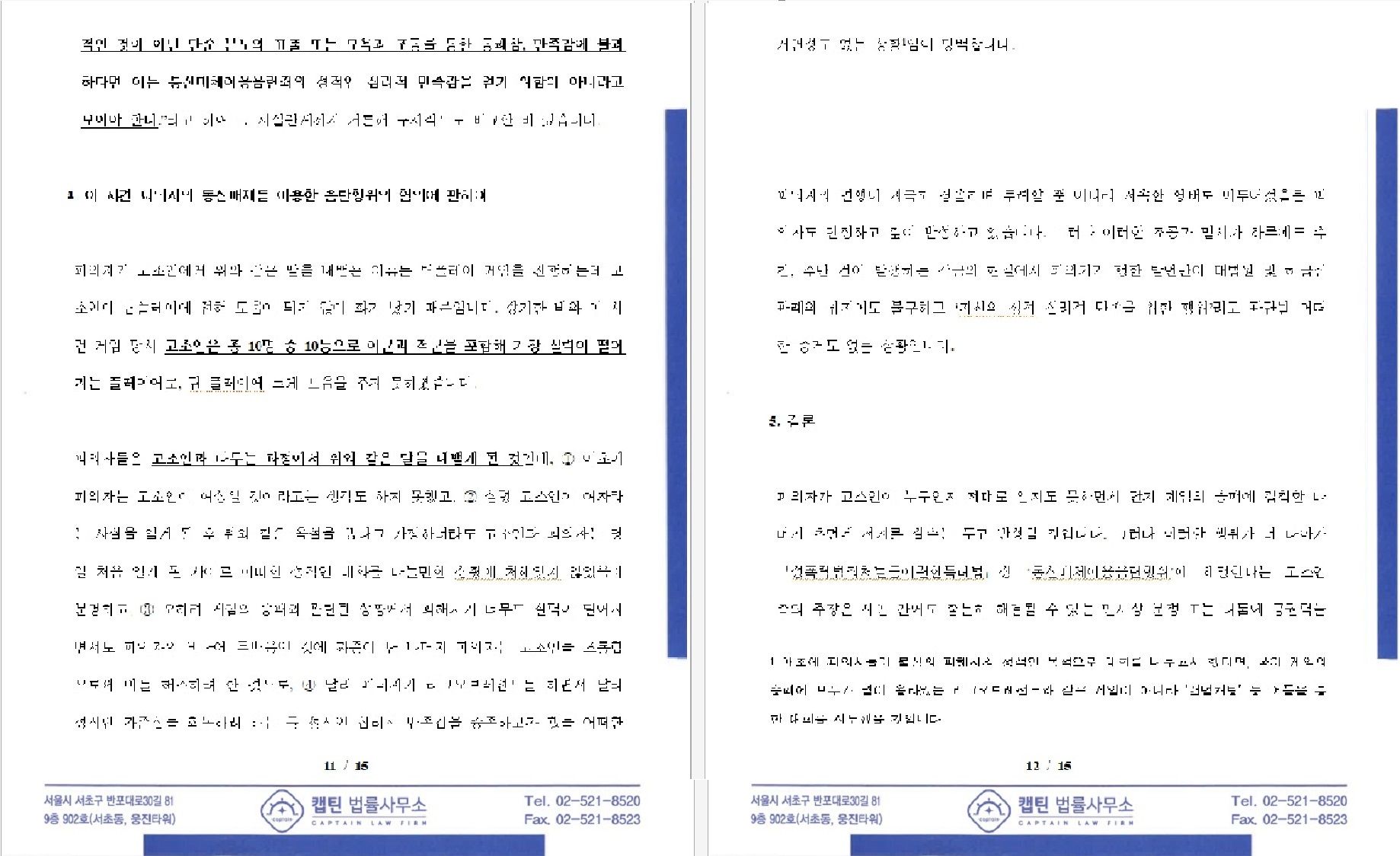 15장에 달하는 변호인 의견서를 제출하여 작성하였습니다.