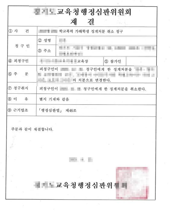 오늘은 억울하게 과한 학폭 처분을 받았던 학생의 사건에서, 행정심판을 제기하여 기존 처분을 취소시키고,