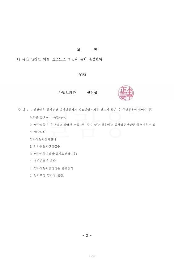 임차권 등기 명령 신청 사건의 실제 진행 사례