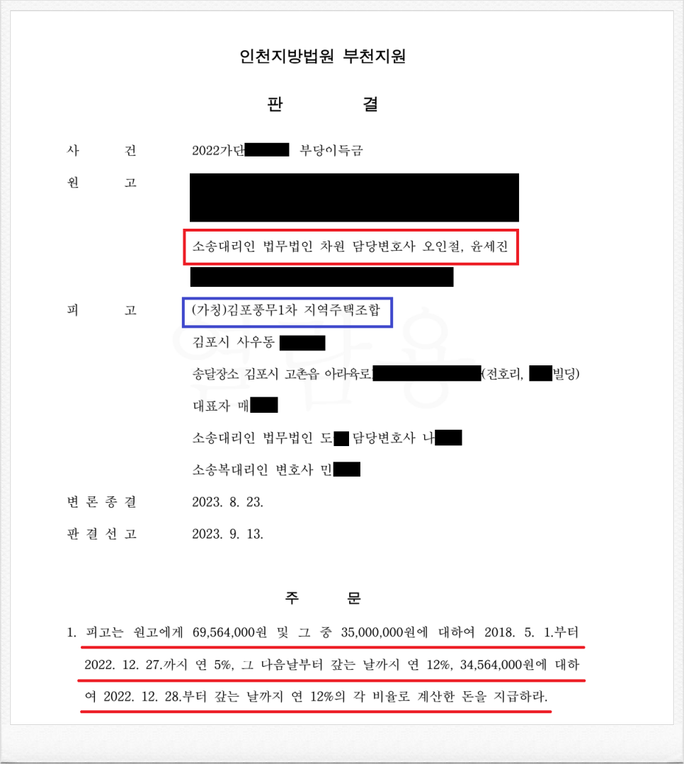결국, 재판부는 이러한 저의 주장을 받아들였고, 피고는 의뢰인에게 기지급 받은 금원 및 이에 대한 지연손해금을 지급하라는 내용의 판결을 이끌어 내었습니다.