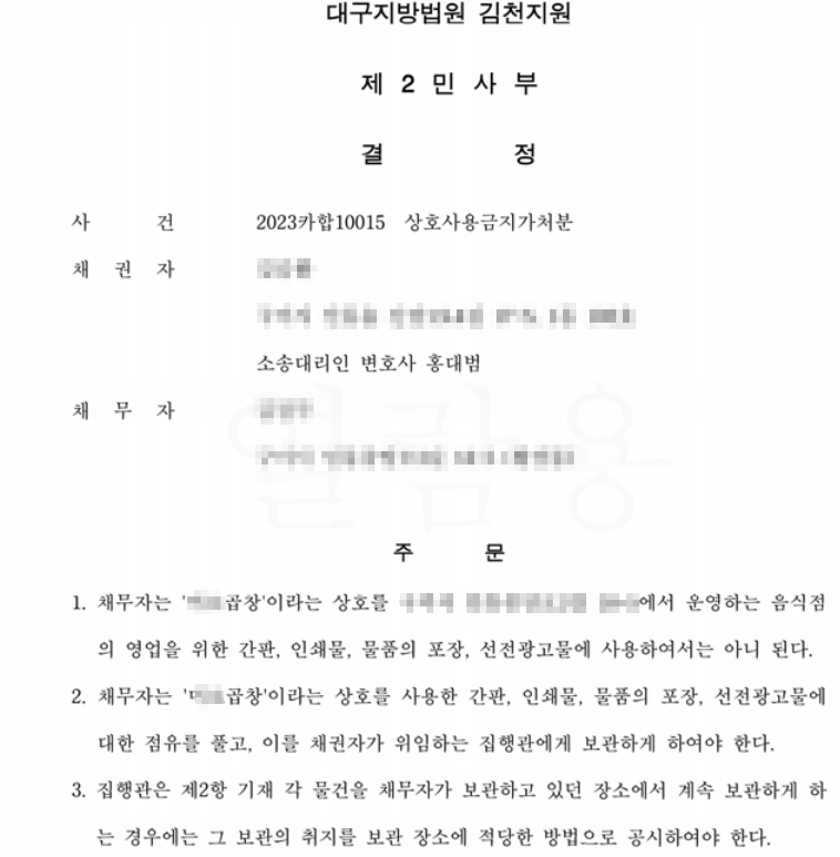 이에 저는 상대방을 상대로 상호사용금지가처분 신청을 하였습니다.