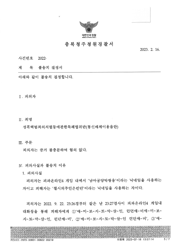 결론적으로 게임 통매음은 위 두가지 유형 모두 무혐의주장이 가능 합니다. 특히나 첫번째 성적 패드립 유형이 무혐의처분을 받기에 더욱 쉽고, 두번째 유형조차도 무혐의처분을 받는 것이 그리 어렵지 않습니다.