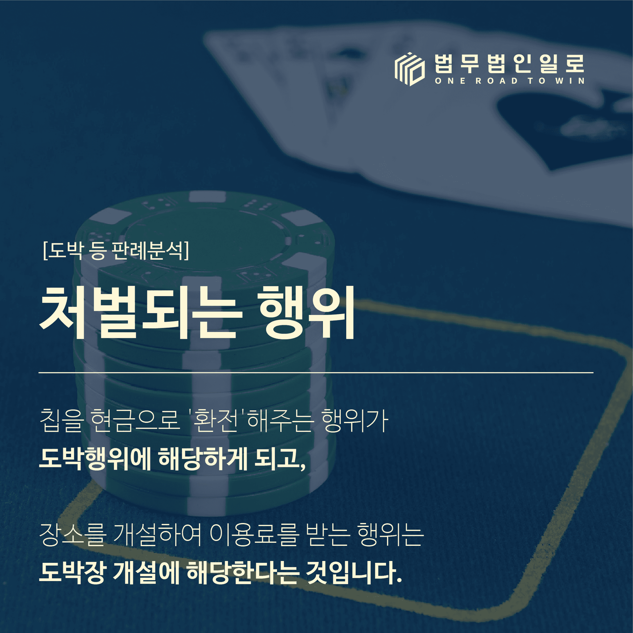 위 판례에서 주목해야 하는 것은 바로 칩을 현금으로 '환전'해주는 행위가 도박행위에 해당하게 되고,