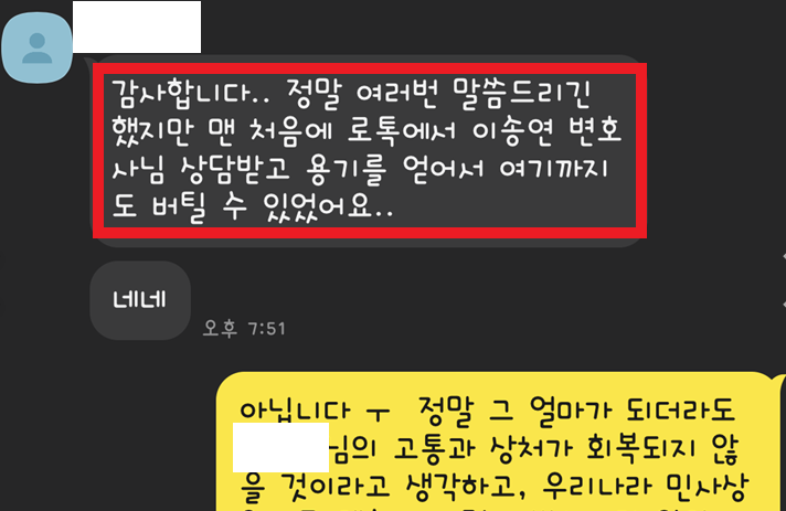 의뢰인분의 심적 고통을 덜어드릴 수 있었습니다.