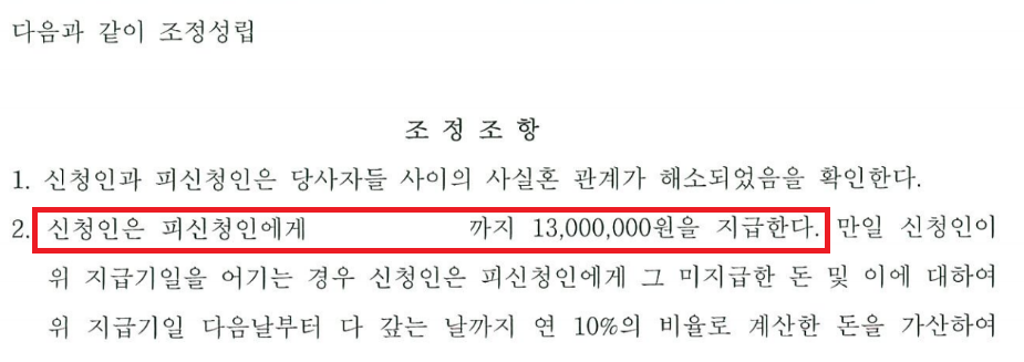 결국 애초 원고의 청구취지와는 달리 원고가 의뢰인(피고)에게 1300만 원을 지급하는 것으로 조정이 성립되었습니다(원고로서는 전부 패소한 것과 다름 없는 결과, 저희 의뢰인은 사실상 전부 승소한 것일 뿐만 아니라, 오히려 1,300만 원을 받는 것으로 조정이 되어, 결과적으로는 2600만 원 이(원고 청구액 1,000만 원 이상+원고로부터 지급받기로 한 1,300만원)상의 경제적 이익을 얻으신 것이 되겠네요^^).