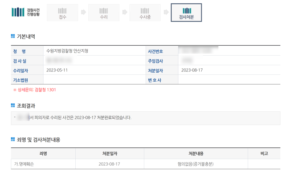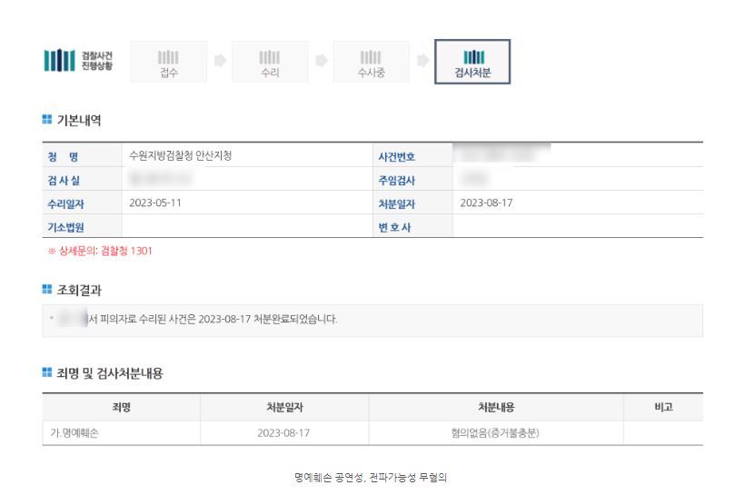 명예훼손 경찰 송치 -> 명예훼손 검찰 무혐의