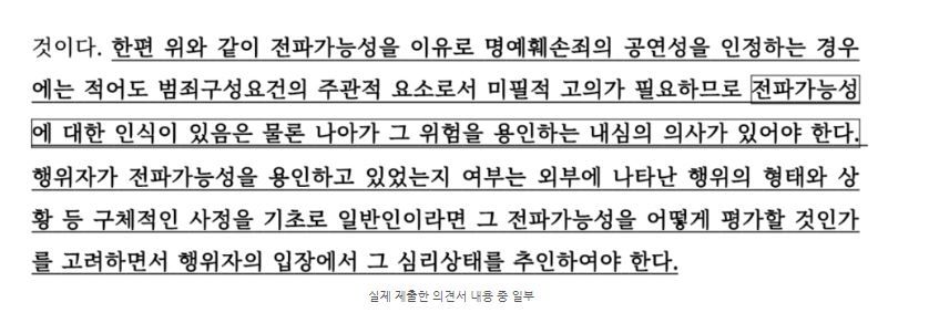 저희는 명예훼손의 요건 중 공연성, 즉 전파가능성이 인정되지 않는다고 주장하여 끝내 무혐의 처분을 받아냈는데요.
