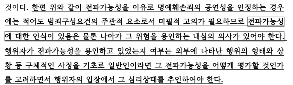 1. 사건의 개요 - 명예훼손 공연성, 전파가능성