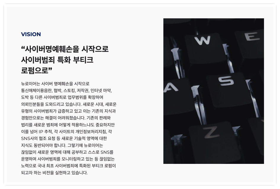 안녕하십니까? 사이버 범죄 특화 로펌 뉴로이어입니다.