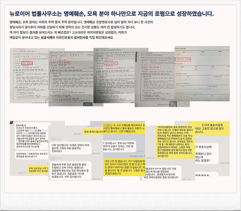 하지만 저희는 명예훼손 특화 로펌으로서,